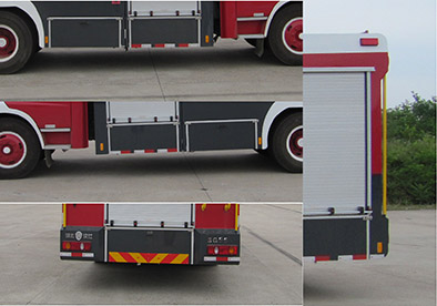 | 配置 | 水罐总容积为5.4立方米,水罐尺寸:1725?375?380mm。整体式侧后防护结构,后防护离地高度:400mm。ABS生产企业为东科克诺尔商用车制动系统(十堰)有限公司,型号为3631010-C2000。主要专用装置有消防泵,消防炮。总长不含尾梯后伸。 | ||