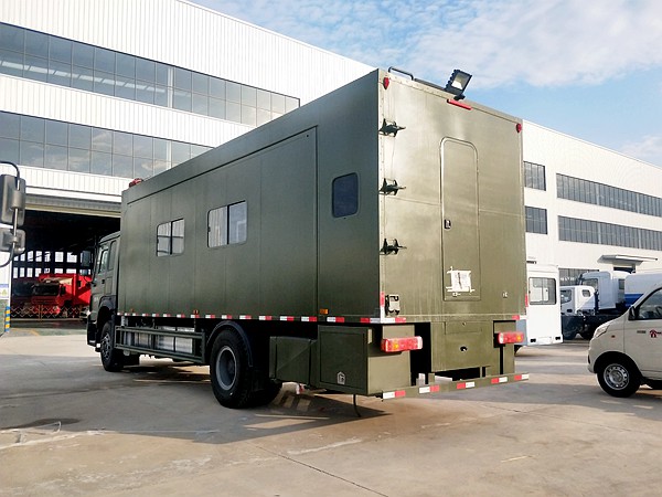 主要专用装置发电机,折叠床铺等,选装配置卫浴间、净水箱、外挂式空调、卫星天线、吸顶电视、换气扇、车厢左、右可选装扩展机构箱体、车厢左、右两侧、后部增加或封闭窗户、车门、车辆颜色可选装装有具有卫星定位的行车记录仪等,不扩展可供8-12住宿,扩展后可供20-24人住宿。(可根据客户要求改装)
