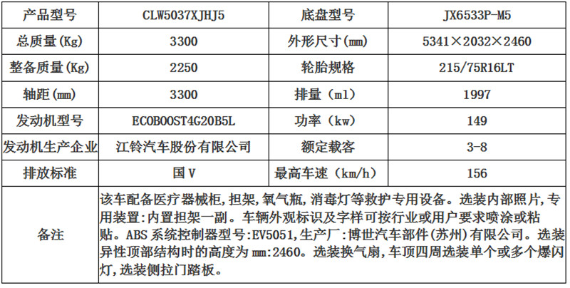 福特V362中轴中顶救护车